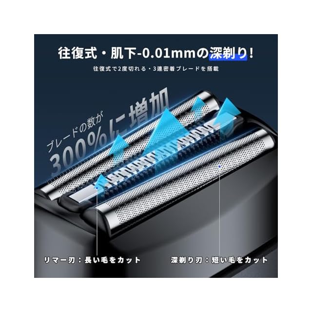 【往復式&密着深剃り】Baanando電動シェーバーは革新的な往復式刃を採用しています。上下左右に独立して動く3枚のフローティングヘッドが肌にぴったり密着し、あご下や鼻下細かい毛や太い毛もしっかりキャッチし、素早く均等に剃り上げます。超高速回転モーターにより、剃る速度が速く、効率的に剃ることができます。