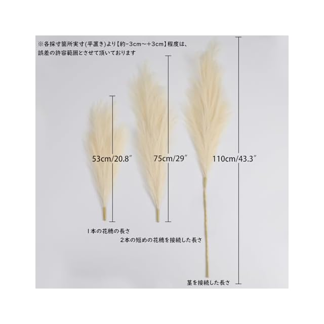 <br>高品質の人工パンパスグラスは、臭くない、折れがなく、柔らかく、リアルな外観を持っています。 <br>110㎝のフェイクパンパスグラスが3本セット、穂先をほぐして、よりふんわりと。ボリュームが出て、たっぷりと豊かなイメージになります。 <br>家のリビングや玄関などに置くと、インテリアやディスプレイ用に飾ったり、お部屋がより快適で居心地の良い場所にします。 <br>DIY可能、使用シーンに合わせてカットすることもできます。結婚式、パーティーにも適しています。 <br>ナチュラルのデザインでお部屋に馴染みやすく、モダン、北欧、和室など様々なインテリアにマッチしやすいです。