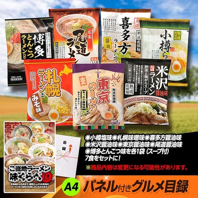 パネル付き目録 ご当地ラーメン味くらべ7食セットの解説