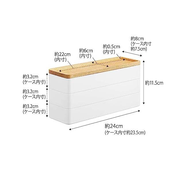 商品サイズ:約W24XD8XH11.5cm ケース:約W24×D8×H3.8㎝ 仕切り:約W7.5×D1.5×H2.6㎝ 木蓋:約W24×D8×H1.3cm