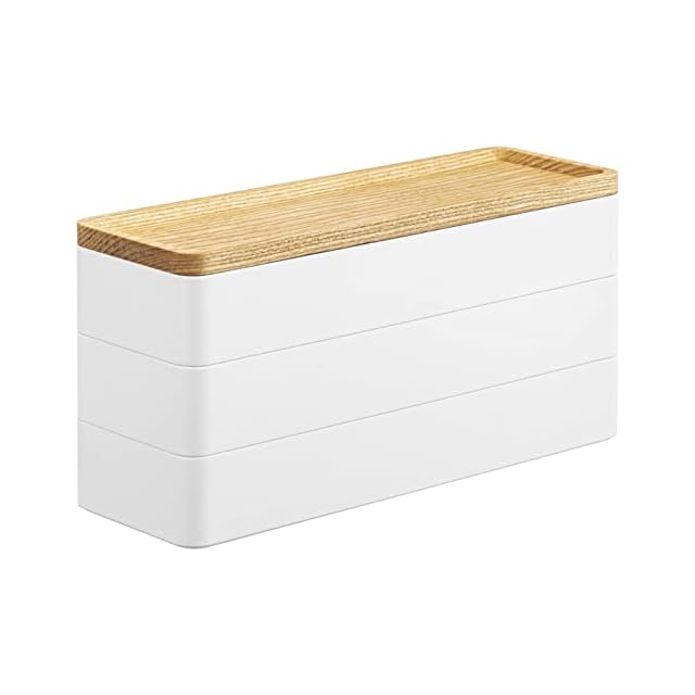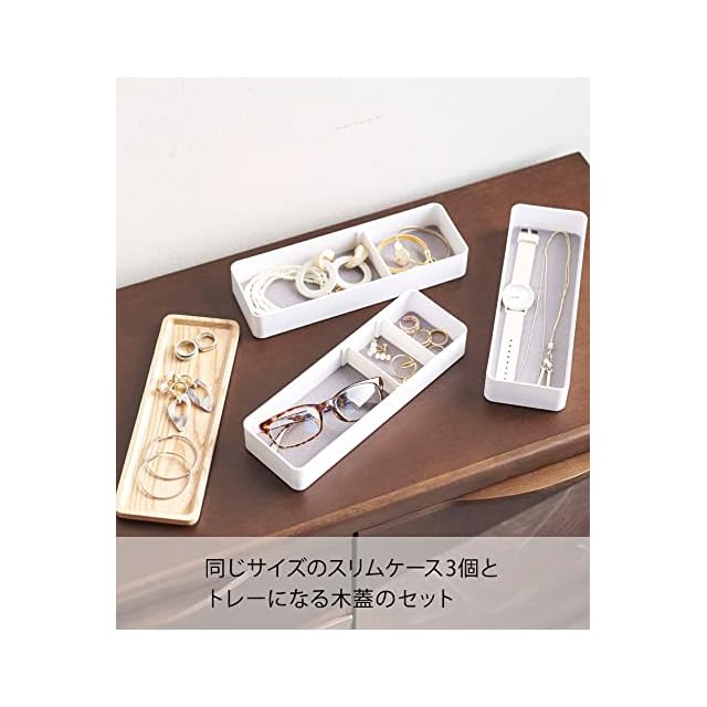 商品名:山崎実業(Yamazaki) トレー付き スリム アクセサリーケース 3段 ナチュラル 約W24XD8XH11.5cm リン RIN 蓋がトレーになる アクセサリー収納 5811
