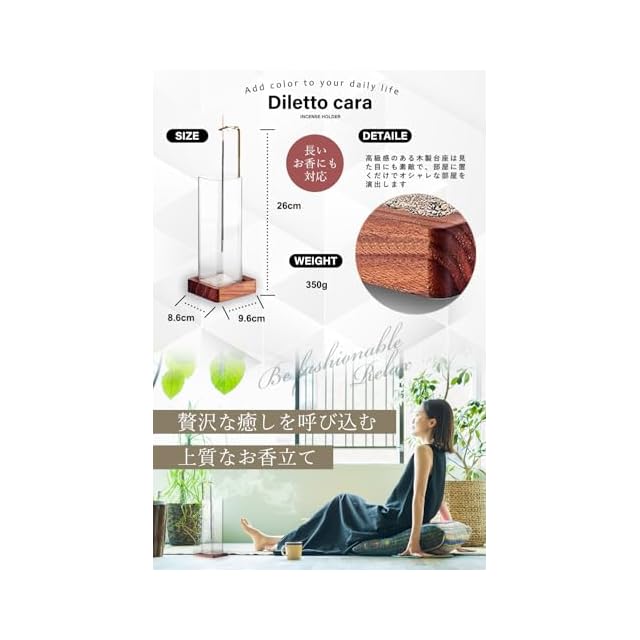【プロ監修+90日】:お香のプロが監修した安心設計。万が一不良があれば90日以内返品可能で、はじめての方でも安心。 【安心の日本企業開発/国産高級木材使用】:インテリアとしてお部屋に彩りを。品質には一切妥協していません。国産高級木材ケヤキを日本製だからこそ実現できる『安全・高品質・高機能・高級素材』 【ワニクリップでどんな線香もズレずに固定】:市販の大径線香から竹芯香まで幅広く対応。折れにくいクリップで手軽にセットできるから、初心者でもストレスフリー。 【長香(24cm)まで対応】:APOTHEKE/GONESHなど長香ブランドにも対応。長時間燃焼してもクリップがしっかりホールドするから、カフェやリビングでも安心。 【灰こぼれゼロのガラスカップ付き】:透明ガラスカップが灰をしっかりキャッチ。テーブルや床に灰が落ちず掃除がラクラク。見た目もおしゃれで、燃焼過程も楽しめる。 【インテリアとして映えるデザイン】:真鍮×木材×ガラスの組み合わせが、和室・洋室どちらにもマッチ。玄関や書斎にちょっと置くだけで、空間に上質感と癒しをプラス。 【プレゼントにも最適なパッケージ】:高級感のある化粧箱入りで、誕生日や母の日、引越し祝などギフトにもぴったり。メッセージカードを同梱すれば、特別な贈り物に。