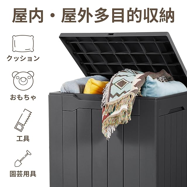 「機能豊富&使い便利」:素晴らしい戸外収納倉庫には大容量と安全性が欠かせない。106L大容量で、枕、おもちゃ、本や道具など、屋内外の物を収納できます。蓋はかぎをかけること可能で、お物の安全を守ることができる。(錠前は別途購入が必要です)