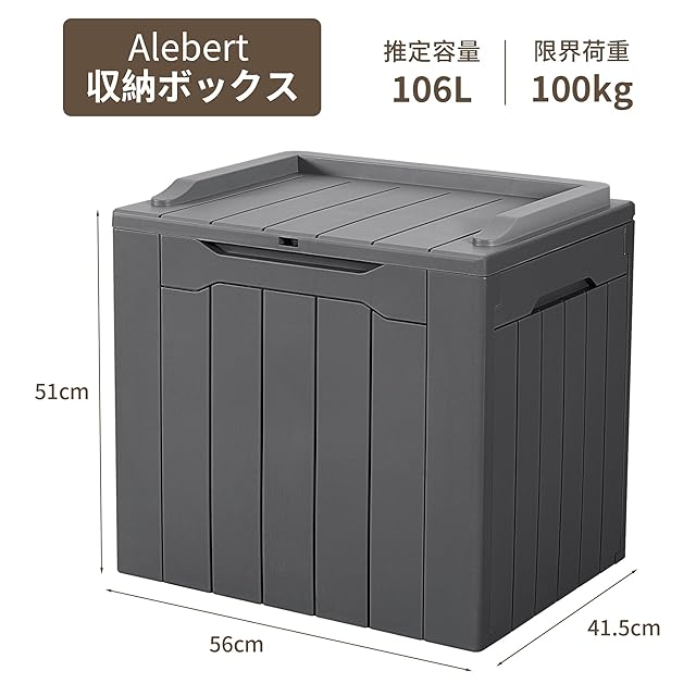 Alebert「アレベルト」 物置 屋外収納 106L大容量 防水 ベランダ収納 ベランダストッカー コンテナ収納 収納ボックス コンテナ収納 屋外倉庫 収納ベンチ ガーデン/庭/ベランダ適用 おしゃれ 幅56*奥行41.5*高さ54CM (グレー, 106L)