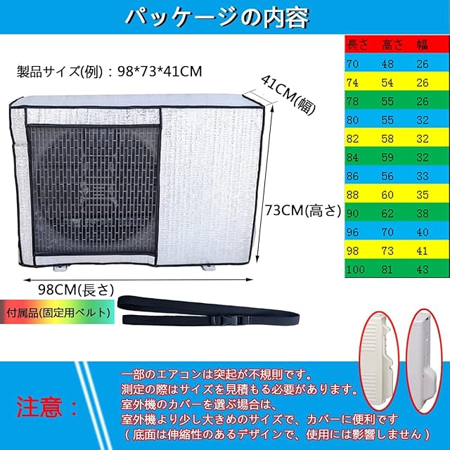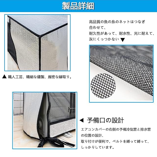 【省エネ・環境保護】サイズ:98*73*41CM エアコン室外機カバーは、光反射のアルミ箔素材を採用、約40%の熱線をカットし、冷房時の室外機の負担を軽減! 冷却効果を向上させることで、室温の冷却速度を短縮し、節電効果や環境保護効果を実現できます。