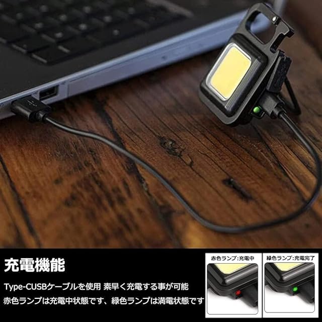 【4種の点灯モード&USB充電式】ミニledライト、1回押し:正常光(COB 60%輝度)、2回押し:弱光(COB 30%輝度、3回押し:点減モード、長押し(2-3秒) :強光。急速充電用のUSB-Type-C充電ケーブルが付属しています。