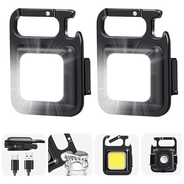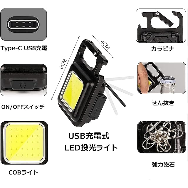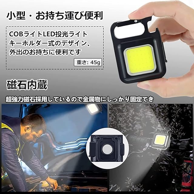 LED 投光器 COB 作業灯 COBライト ミニ投光器 ミニ懐中電灯 USB充電式 キーホルダー式 超ミニ 45g 小型 軽量 800ルーメン 高輝度 4種点灯モード IPX4防水 強力磁石付き 緊急照明用 アウトドア用 釣り キャンプ 登山 ランニング 防災 地震 停電 作業用 LEDライト アウトドア (アルミ合金版, 2個セット)