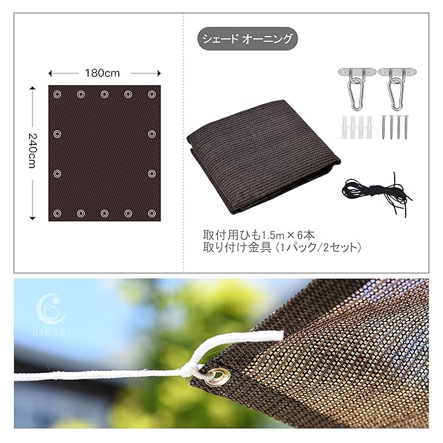 付属品:取付用ひも1.5m×6本、取り付け金具 (1パック/2セット)。廊下、庭下、庭先、玄関などに簡単に取り付けることができます。お洒落なデザインなので、日よけだけでなく、ご自宅やお庭のエクステリアとしてもご利用なれます。