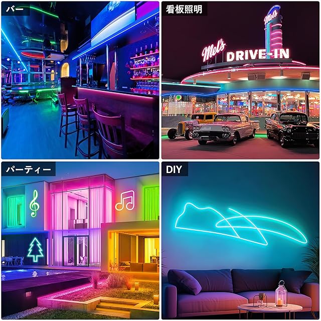 [安全で耐久性]] 12V低圧のパワーから、このネオンライトLEDライトバーは安全に使用できます。 シリコンシェルは柔らかくて丈夫で、高温耐性であり、赤外線リモートコントロールとアプリによって制御できます。