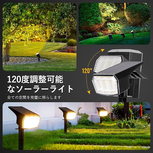 【アップグレードのソーラースポットライト】夜は自動的でオンにする、昼は自動的でオフにする。高効率ソーラーパネルの使用により、昼間の太陽光を夜のあかりに変換。屋外にコンセントがない場所でも、置くだけでライトアップできるようになりました。太陽光は持続可能なエネルギーのため、エコロジーにも貢献。気兼ねなくライトアップをお楽しみいただけます。