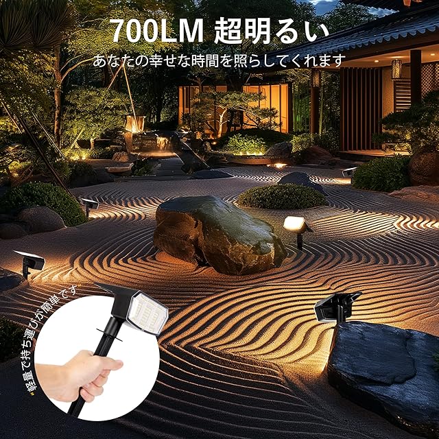 【プロが使う明るさと光の質】63個高品質LEDが揃え、超明るさの700lmに達して防犯ライトとしても大丈夫。より広い照明角度、より長い稼働時間で裏庭全体を照らし、絶妙に景観に命を吹き込みます。夜の陽だまりをつくろう。DIYでプロみたいなライトアップ。広範囲を明るく均等に照らします、長く使える、庭を明るく照らす。明暗が美しく、住まいの印象をガラリと変えることができます。足元や花壇に十分な明るさを届けます。 光の波長がより自然光に近く、本来の色合いを正しく再現できるため、花や緑を色鮮やかに照らします。