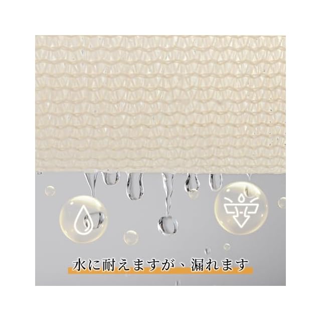 【日除け効果と耐久性】夏の陽射しには光が通るのでベランダや庭でも使用できるようです。メッシュ素材なので風も通るため、夜電気をつけてもレースカーテンをすれば部屋の中が見えないという点も魅力の一つです。このシェードの素材はポリエチレン(HDPE)で、軽くてしっかりとした造りで完全日除け目隠しになります。