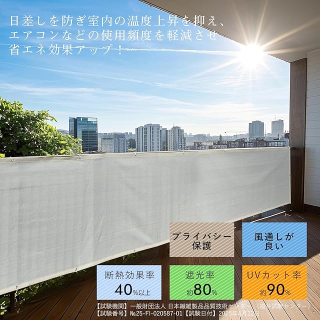 通気性がある素材で、熱気がこもらず、遮光率85%で日差しと紫外線をカットすることで省エネ効果も期待できます。窓の外に組み立てたら、部屋の温度は即下げることができます。外から見えにくくなり、日差しと視線を遮って、涼しく快適にお過ごしいただけます。