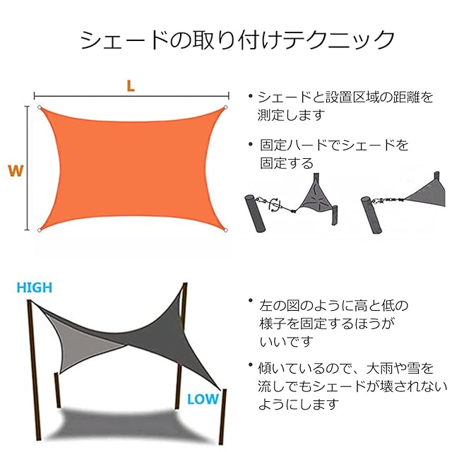 【豊富のサイズと色】本店では、違うサイズと色のサンシェードを提供しており、お客様により良い体験を提供するように精一杯頑張ります! 包装:シェード本体、ロープ*4
