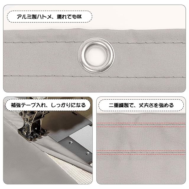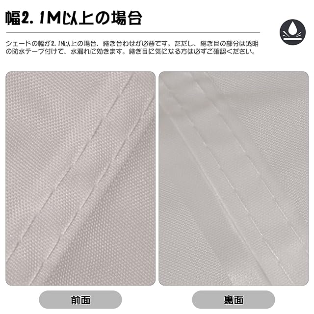 【継ぎ目について】シェードのサイズ幅が2m以上の場合、継ぎ合わせ必要です。ただし、継ぎ目の部分は透明の防水テープ入れて、継ぎ目の水漏れに効きます。継ぎ目に気になる方は必ずご確認ください。