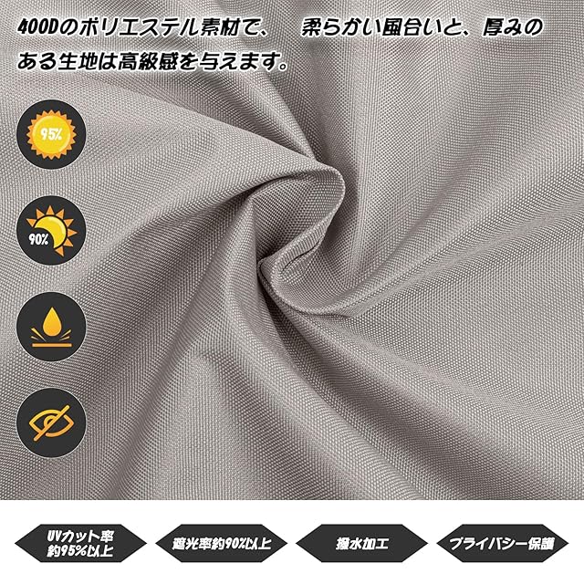 【抜群の機能性】UVカット率約95~98%です。UVカット率高くて、紫外線対策に最適です。遮光率約90~95%です。視線カットには十分です。耐水力約400kpaで、大雨でも楽に守ってくれます。