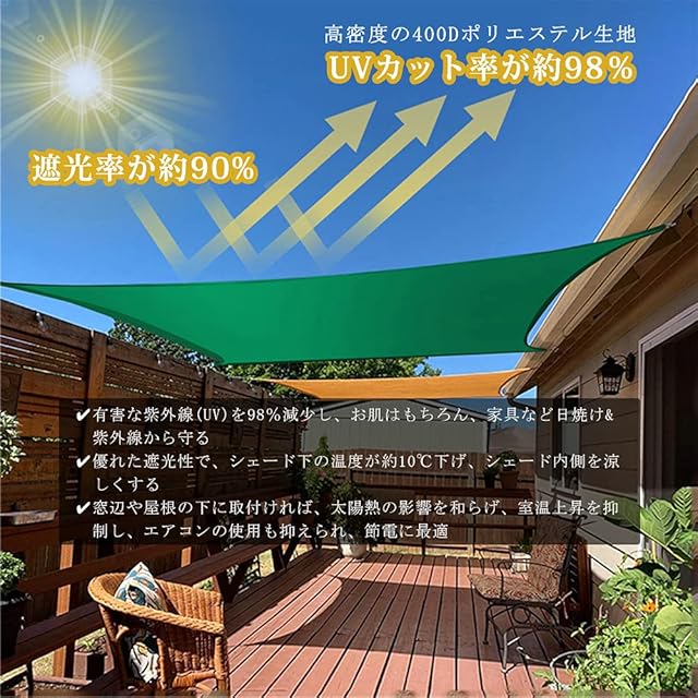 ☀☂【抜群な断熱効果+uvカット・日除け シェード】高密度の160GSM/400Dポリエステル素材を採用。直射日光を90%遮り、有害な紫外線(UV)を約98%カット、日焼けなど身体、植物、家具などへの傷害を軽減。目隠しとしてもオススメ。