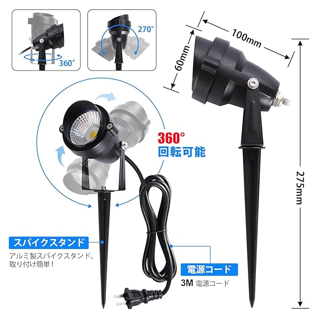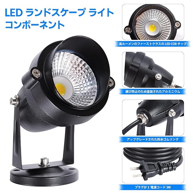 COB LEDチップ採用して、普通のLEDチップより明るく、安定しています。1280ルーメンで超明るく、均一な庭のスポットライト、長距離&広い放射範囲、柔らか い地上で集中照明のため、花壇に魅力的で、装飾的な輝きを追加し、暖かく、甘い屋外夜を提供することが出来ます。庭木をライトアップしたり壁面に当てたり と、光の使い方でお庭の雰囲気は変わる。効果的に配置すれば夜のお庭の表情もより魅力的に生まれ変わる。