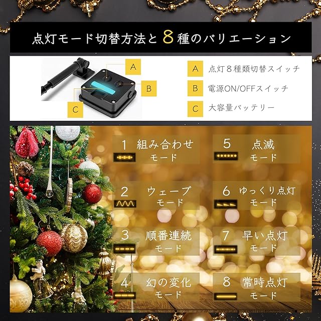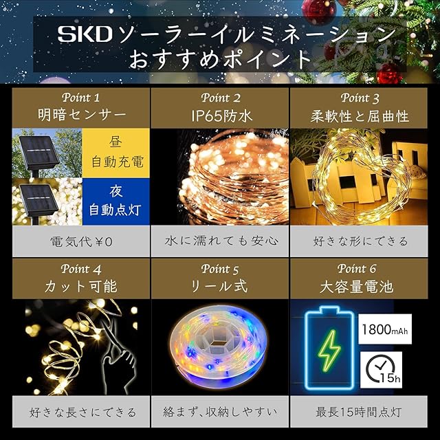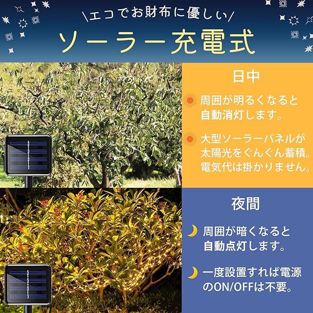 昼間はソーラーで充電、夜になると暗さ検知で自動で点灯するイルミネーションライト