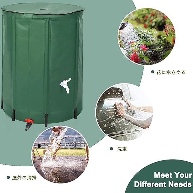 FTWIND雨水タンク 家庭用 集水器50L~1000L選択可能 貯水タンク 屋外折りたたみ式ポータブル ウォーターバケツ 防災用雨水タンク 屋外用 園芸植物灌漑可能 雨を貯めて節水 貯留タンク 簡単設置 雨水を貯めて節水可能 農業 緊急給水 雨水収集用 (緑, 40×50cm(50L)) | つむぎ屋