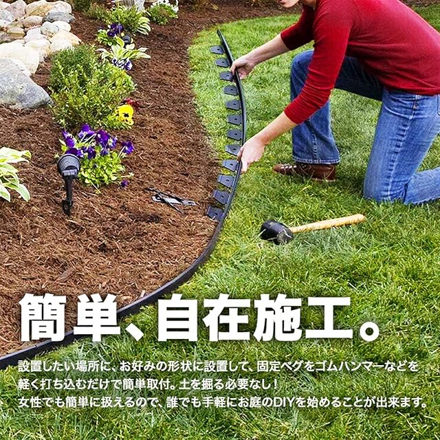設置が簡単:芝生を掘り返す必要はなく、数センチごと、または重要な曲がり角で固定ピンを叩いてエッジングを固定するだけです。