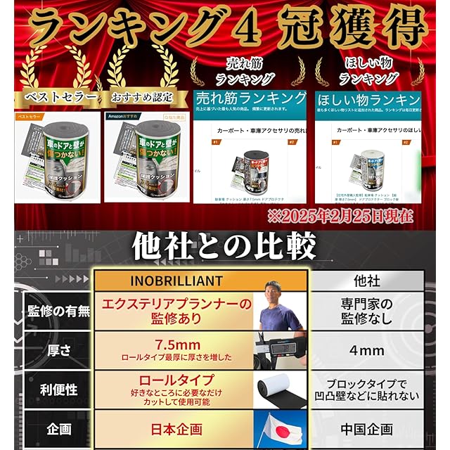 ✅【車のドア&ガレージの壁のキズ防止に】◆ 軽量で柔らかいシート状のクッション材。車庫の壁に貼るだけでセダンやSUVなど様々な車種のドアと車庫の壁の両面をドアパンチから保護します。