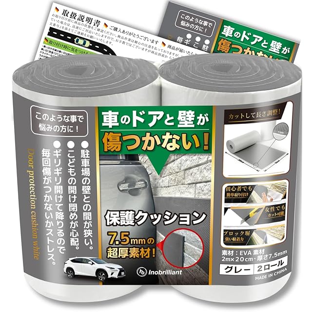 ✅【厚さ7.5mmのクッションロールで車のドアやガレージの壁のキズ防止に】◆ 軽量で柔らかいシート状のクッション材。車庫の壁に貼るだけでセダンやSUVなど様々な車種のドアと車庫の壁の両面を保護します。