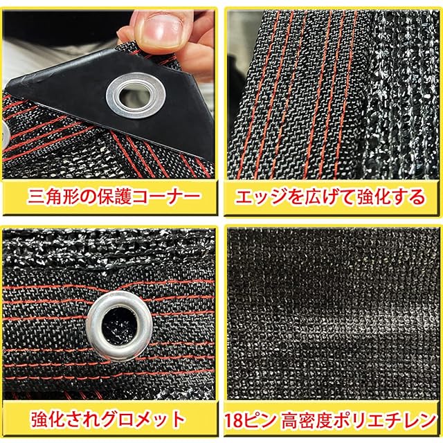 【最新型遮光ネット】耐久性に優れた18ピン高密度なポリエチレンを使用した日よけシェードです。専用の縁を広くして、6本の線の端を強化して、歩くのを防いでと落ちる特徴を持って、引き裂きにくくて。サンシェードネットの四隅には三角形の保護コーナーがあり、1mごとに両側にグロメットがあります。それらは、補強されたエッジ全体に沿って配置されています、吊り下げが簡単で、風に抵抗する性は強いです。