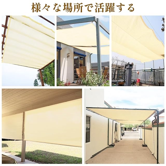 【取り付け簡単】日よけシェードは錆びないハトメであり、付属したヒモが必要な長さにカットして、日本語説明書の通りに簡単、安全、自由自在に日よけシェードスクリーンをお取付けます。uvカットサンシェードは中性洗剤と水で洗って、簡単に汚れが落ちせ、カビや色褪せを防ぎ、長くお使いになれます。日よけ止めシェードも折り畳んでコンパクトに収納できます。