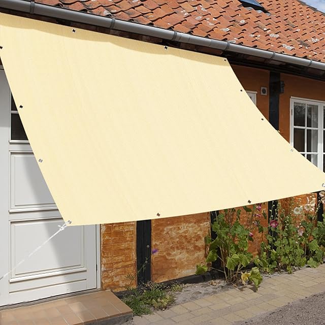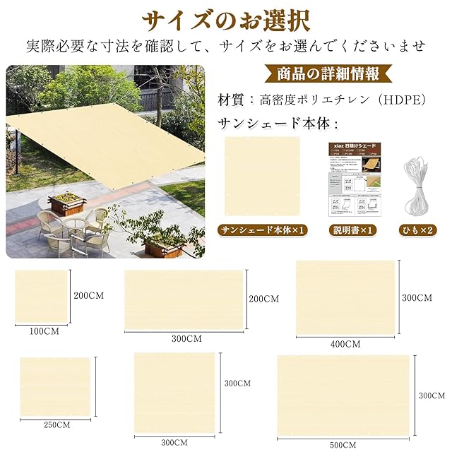 XiaZ 日除けシェード 1*2m サンシェード オーニング ベランダ日よけ 目隠し 遮光 UVカット 高密度ポリエチレン 日よけスクリーン 取り付け簡単 家庭用/廊下/庭下/屋外/バルコニー用 プライバシー保護 ベージュ色 適格請求書発行可 | つむぎ屋