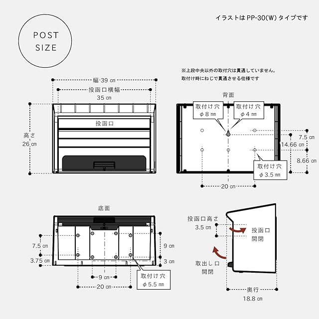 【雨・風でも郵便物が濡れにくい】郵便投入口扉にバネがついているため、扉が開きにくく、雨や風から郵便物を守ります。