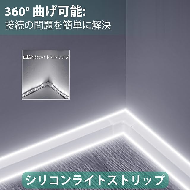明るく均一な照明— 2400個の高輝度昼光色LEDを搭載したLEDテープライトで、6000Kの色温度により、120度の広範囲にわたって柔らかく均一な光を提供します。