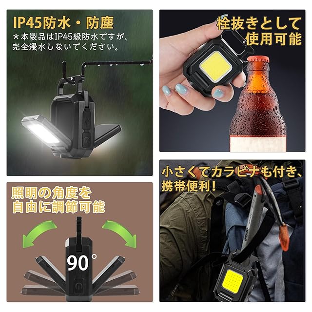 LED 投光器 COB 作業灯 ミニ懐中電灯 USB充電式 キーホルダー式 超ミニ 45g 小型 軽量 800ルーメン 高輝度 4種点灯モード IPX4防水 強力磁石付き 緊急照明用 アウトドア用 釣り キャンプ 登山 ランニング 防災 (1) | つむぎ屋