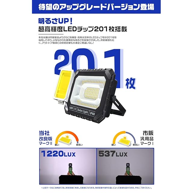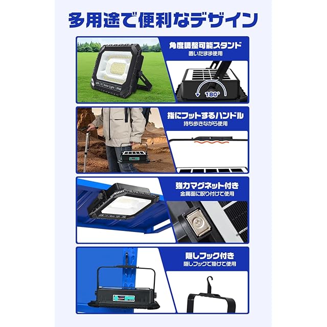 【驚異の明るさ16800LM|超高輝度LED201チップ搭載】 小型ながら、一般的なLED投光器をはるかに凌ぐ201枚の高効率LEDチップを搭載。広範囲を均一に照らし、屋外作業・夜間活動・キャンプ場の照明などで圧倒的な視認性を実現。