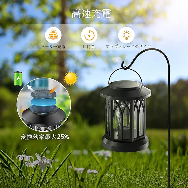 【レトロデザイン& ソーラーランタン】:本屋外ランタンのデザインは伝統と現代を融合して、和傘の骨組技術を応用した耐衝撃構造で、歴史的意匠を現代的解釈で再現したレトロモダンな佇まい。本ソーラーランタンは99%の庭スタイルに調和でき、和風庭園から洋風テラスまで、照明器具としてだけでなく芸術品としての景観演出します。