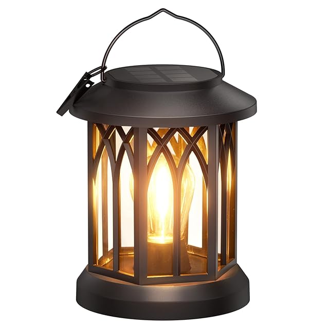 Letmy ソーラーランタン ソーラーライト 屋外 防水 ガーデンライト おしゃれ ledランタン LED 電球色 夜明け 自動オン/オフ 庭、花壇、パティオ、玄関、ベランダ、駐車場、歩道などに適用 屋外 照明 ガーデニング イルミネーション 母の日ギフト (ブラック, 1) | つむぎ屋