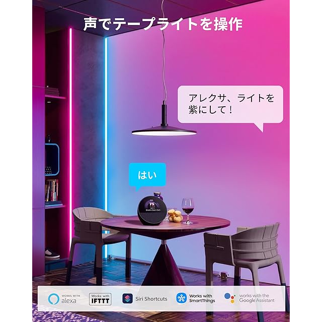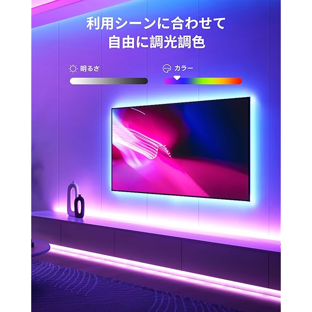 【スマートスピーカーで操作できる】「アレクサ、ゲームモードにして」という一声で、SwitchBotテープライトがキラキラと輝き始めます。ゲームだけでなく、パーティーの雰囲気作りにもぴったりです。音声操作で明るさ、カラー、オン・オフなどを調節可能。Google Home、SiriやIFTTTなどにも対応。