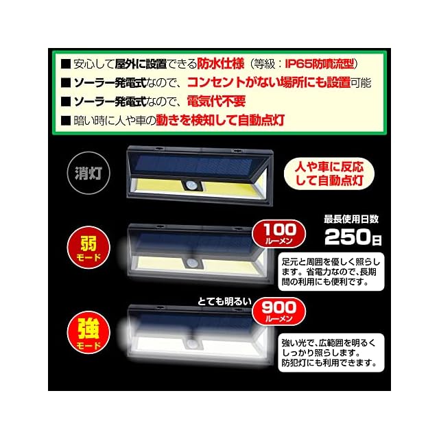 【ソーラー発電式】ソーラー発電式なのでコンセントがない場所に設置できて、電気代もかかりません