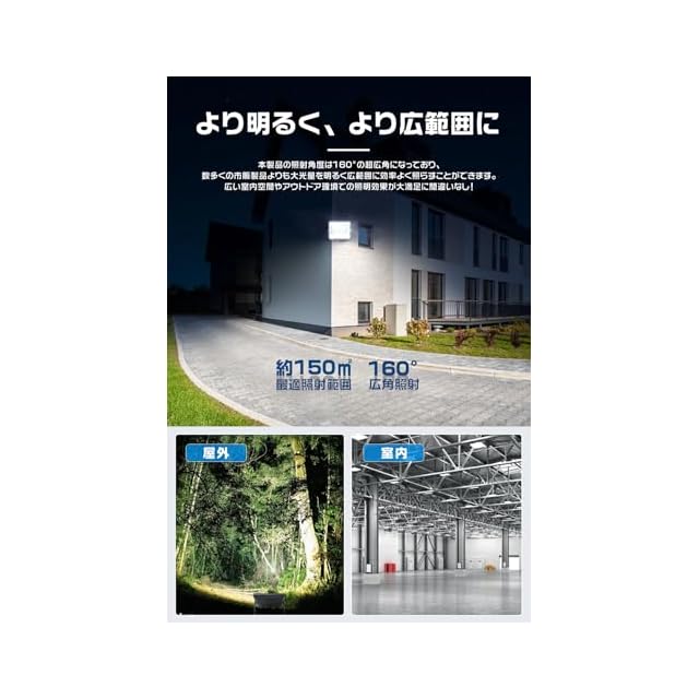 【より明るく、より広範囲に】本製品の照射角度は160°の超広角になっており、大光量を明るく広範囲に効率よく照らすことができます。広い室内空間やアウトドア環境での照明効果が大満足に間違いなし!