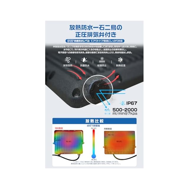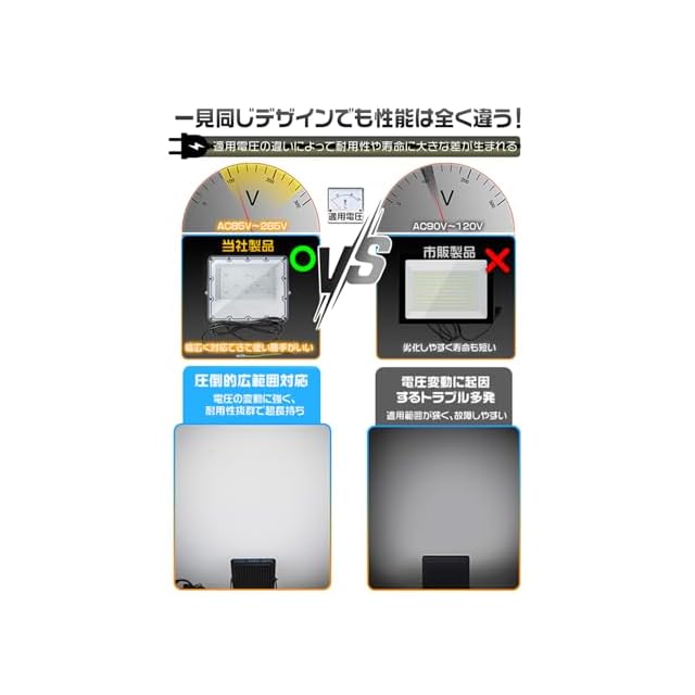 HIKARI LED投光器 100W 作業灯 19600lm 144チップ led 屋外 IP67防水 昼光色 6500K 極薄 85~265V 省エネ 軽量 看板 駐車場 倉庫 工事用ライト 豪雨対応 1個「A-CBD-J-LED」 | つむぎ屋