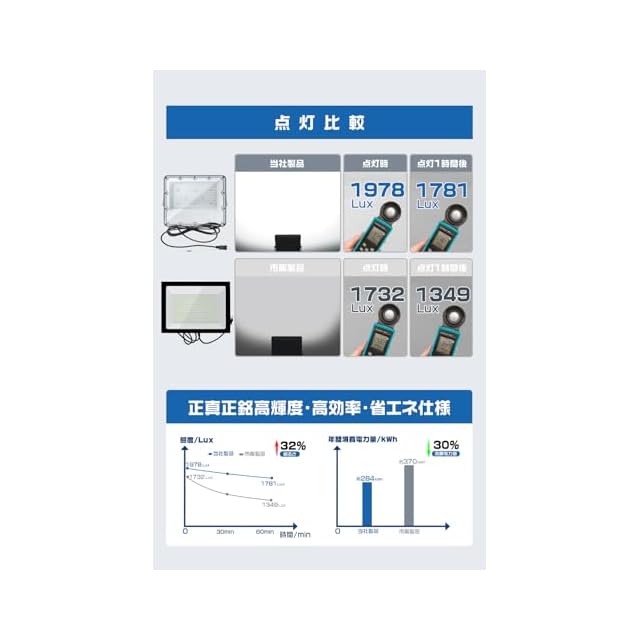 極薄LED投光器200Wクラス ●色温度:6500K(昼光色) ●対応性:85〜265V ●本体重量:1.2KG