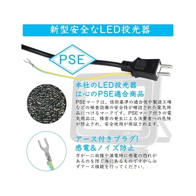 【LED投光器 50W規格】:72個高輝度SMDチップを採用、発光効率は非常に高い、極薄型50W LED投光器850Wに相当、普通のLED投光器より明るく、安定しています。接続線:2メートル、 入力電圧:86-265V 、光束:8000ルーメン 、色温度6500K(昼光色)、TVS保護装置内蔵。120°までの発光角度で、長距離&広い放射範囲、今までのLED投光器より広い範囲の光源を提供いたします。