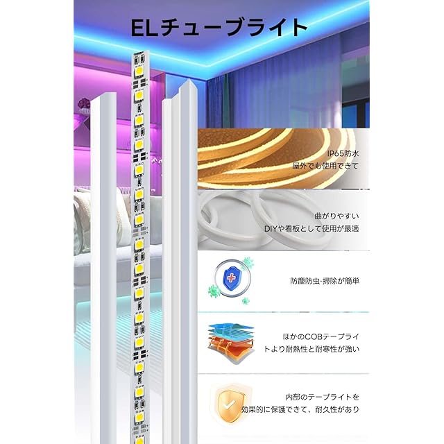 SPAHER LEDテープライト RGBIC チューブライト 調光調色 APP制御 音声同期 防水 リニア発光 ネオンライト 曲がりやすい 切断可能 取付簡単 ストリップライト 目に優しい 間接照明 DIY 飾り 10メートル | つむぎ屋