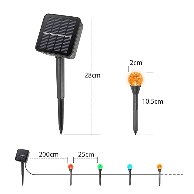 【10球屋外 防水ソーラーガーデンライト】長さは4.25メートルで、10球のLED埋込ライトを搭載しています。ロリポップのようソーラーグランドライトはとても可愛くてピカピカ光る、どこでも設置可能、庭園や小道、ポーチ、ベランダ、クリスマスツリーと盆栽などを美しく装飾し、おしゃれ雰囲気を作り出します。イベントやパーティ、店舗のデコレーションにもオススメです。