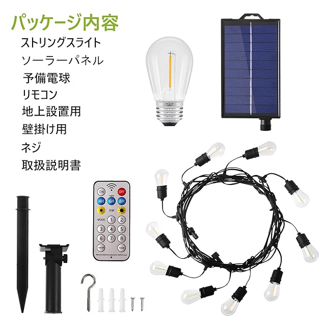 YOSION ソーラーストリングライト 12m 防雨型 夜間自動点灯 4つの調光モード PC素材 電球色 2700k10個 LED電球 クリスマス 結婚式 パーティー お祭り電飾 屋内屋外 庭ライト