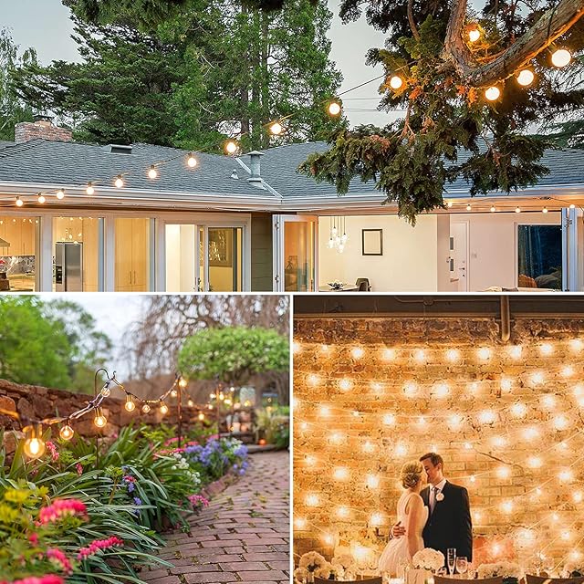 LEDストリングライト 防雨型 15M イルミネーションライト 電球色 25+1個G40電球付 E12口金 破損しにくい 連結可能 ガーデンライト 誕生日パーティー飾りライト 学園祭 クリスマス ハロウィン電飾 GLUROO | つむぎ屋