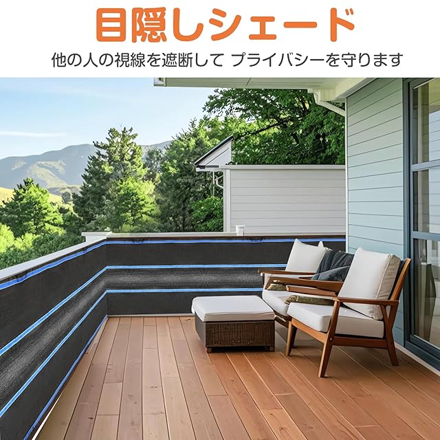 【目隠しシェード】フェンスに取り付ければ他人の視線を遮断して、遮光の同時にベランダなどで快適にお過ごしいただけます。プライバシーをしっかり保護します