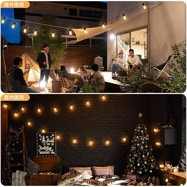 『PSE認証·多場所適用』:LEDストリングライトはPSE認証を取得しており、製品の品質と安全がされている。屋内または屋外装飾照明用の高品質ストリングライトです、ロマンチックな雰囲気と暖かいライトを作り出します。屋内屋外用ストリングライトは花園、寝室、玄関、庭、喫茶店、などの場所や結婚式、誕生日、パーティーなどの様々な祭りにとても良いイルミネーションです。