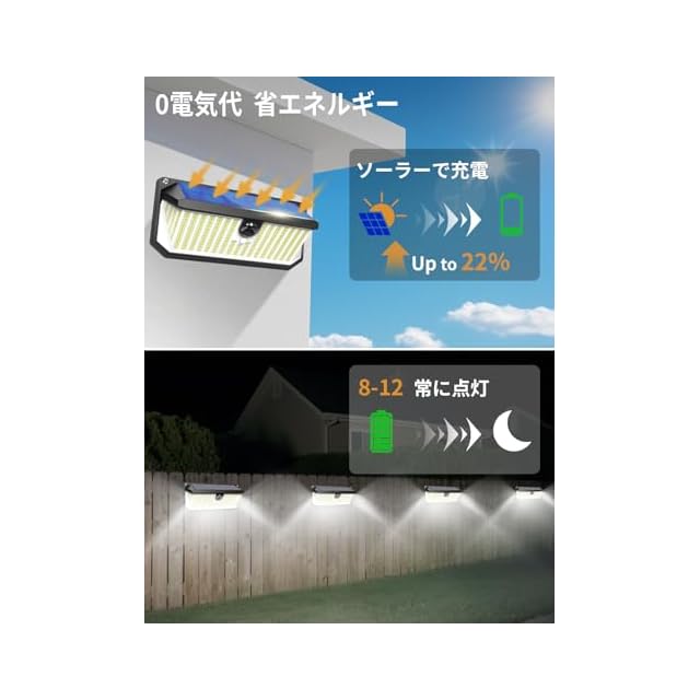 【2800mAh大容量バッテリー・環境友好・O電気代・停電対応】センサーライトは2800mAh超大容量バッテリーが満充電後最大15時間点灯(冬場付)。独自開発ソーラーパネルは変換効率27%(※)を実現し、曇りの日でも確実に充電。電気代年間¥2,300削減(※10畳庭灯比較)しながら、CO₂排出量を普通電球比87%削減─明るさと地球優しさを両立した、次世代型ソーラー照明の決定版!完璧な停電対策、地震や台風などの自然災害で万一電源が停止しても照明機能を保ち、防犯や避難などに貢献します。(ご注意:直射日光が当たる場所に設置してください。明るい場所でもベランダなどの軒下や日陰の場所ではうまく充電ができませんので、ご了承ください。)