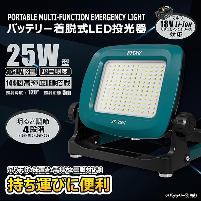 商品名:GOODGOODS led 電池式 投光器 3000lm 25W バッテリー着脱式 ポータブル投光器 夜釣り 作業灯 防水 強力マグネット 昼光色 超高輝 屋外照明 DIY 工事 夜釣り ワークライト 携帯型 災害グッズ 停電対策 アウトドア 集魚灯 防災 地震 台風 バッテリーなし SK-25W